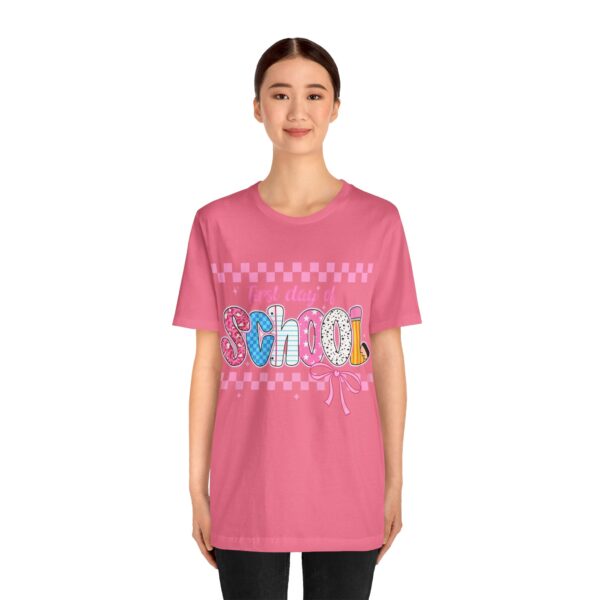 Celebrate milestones in style with this Unisex Jersey Short Sleeve Tee, perfect for the first day of school. This vibrant and playful tee features a colorful design that radiates joy and excitement, making it an ideal choice for students and parents alike. Whether you’re gearing up for a new academic year or looking for a unique back-to-school gift, this shirt adds a fun touch to any outfit. It’s versatile enough for casual outings, school events, or relaxing at home. Perfect for children and teens, this tee is a fantastic way to mark the start of a new journey and create lasting memories. Ideal for back-to-school season, birthdays, and family celebrations!