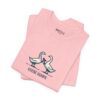 A fun and playful t-shirt featuring two geese bumping into each other, perfect for those who enjoy light-hearted designs. This tee is suitable for casual wear and can add a touch of humor to any outfit. Ideal for adults looking for a unique and quirky addition to their wardrobe, great for everyday wear and casual occasions.