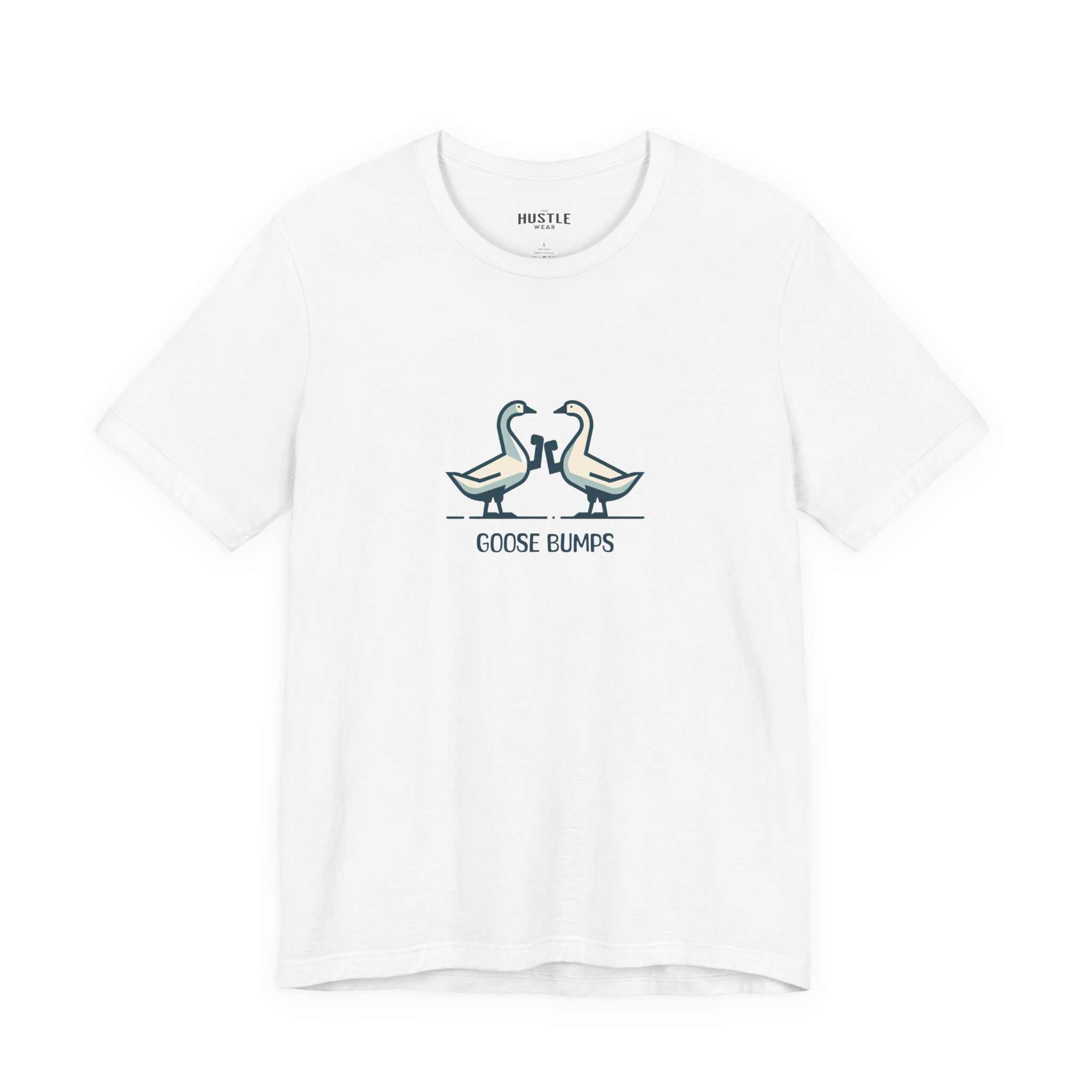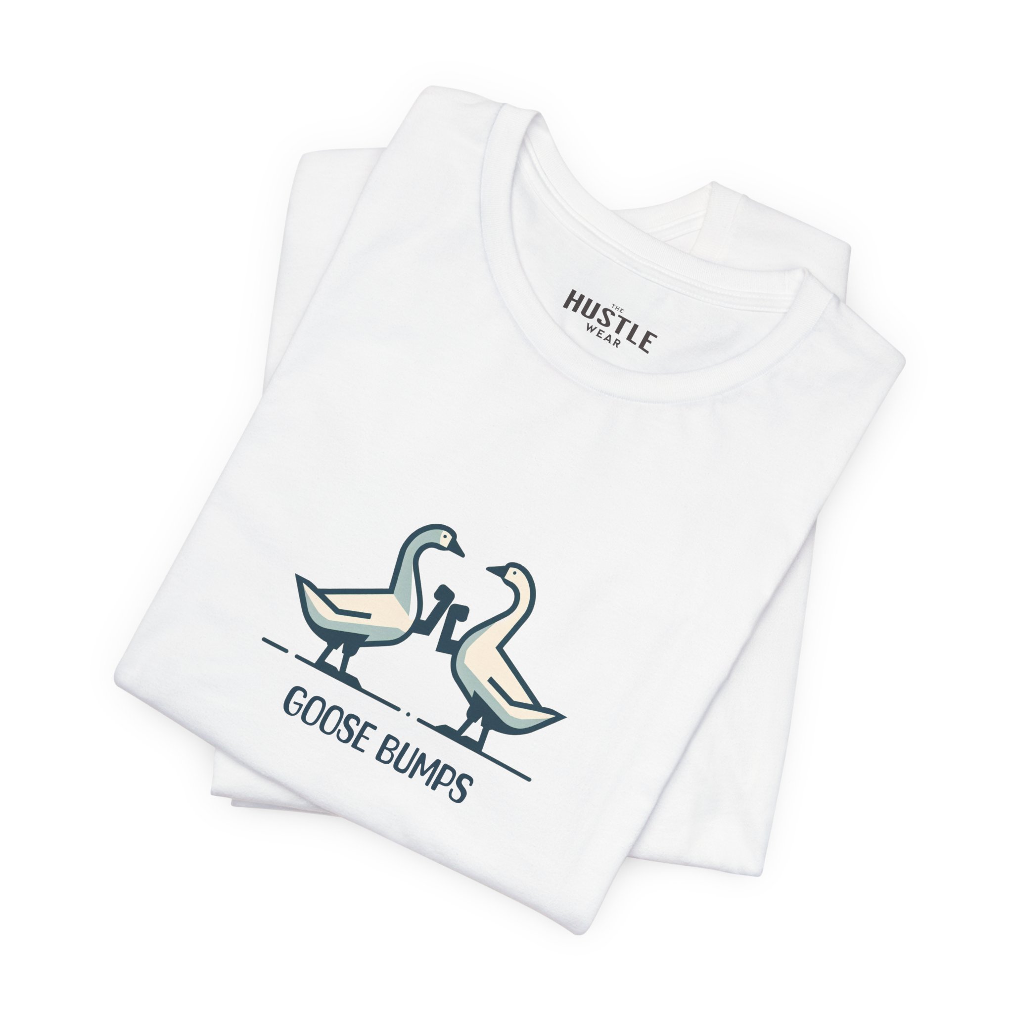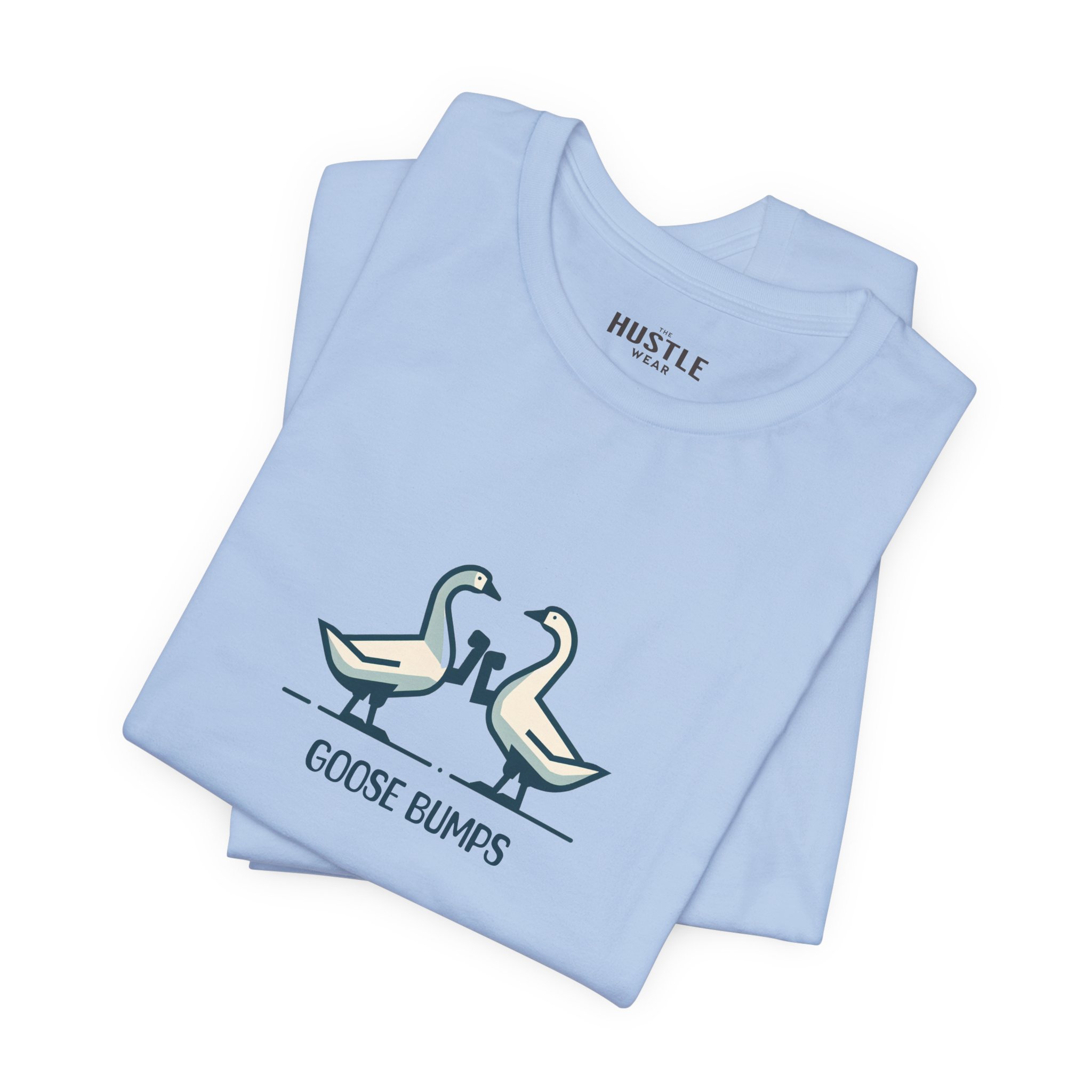 A fun and playful t-shirt featuring two geese bumping into each other, perfect for those who enjoy light-hearted designs. This tee is suitable for casual wear and can add a touch of humor to any outfit. Ideal for adults looking for a unique and quirky addition to their wardrobe, great for everyday wear and casual occasions.