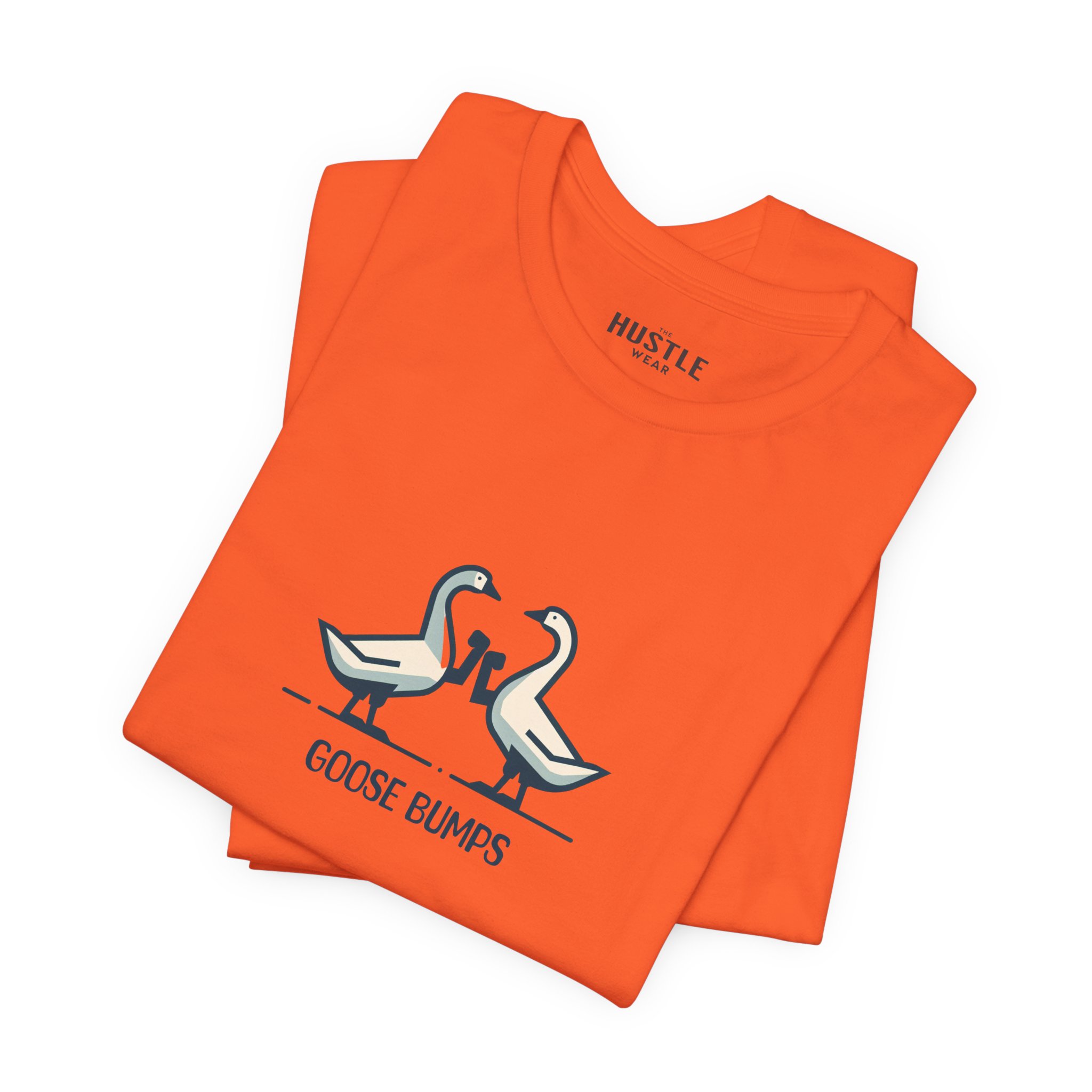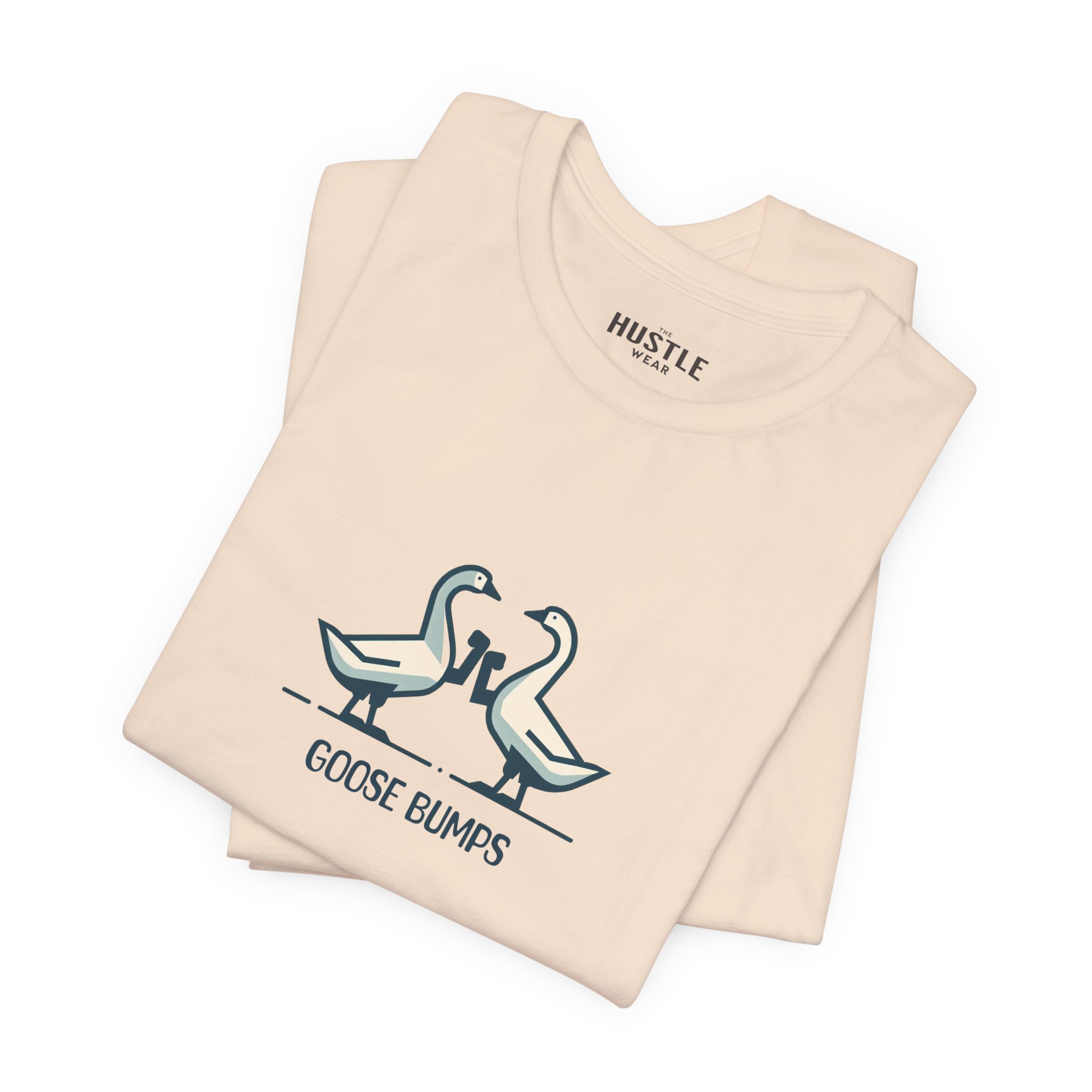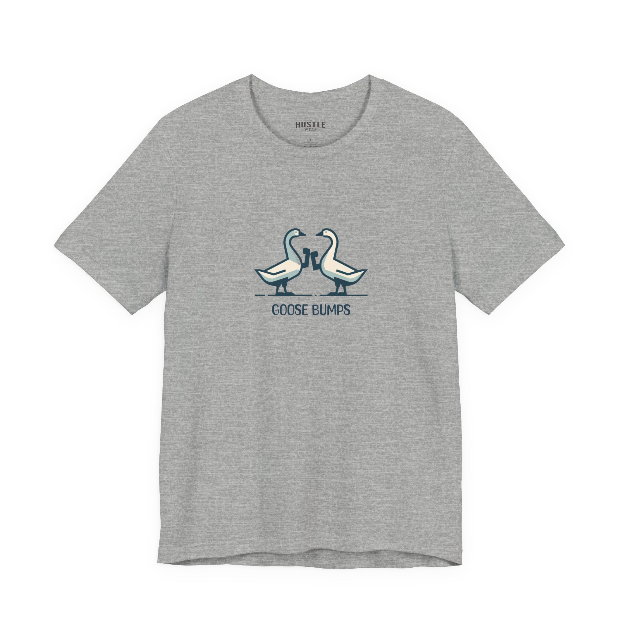 A fun and playful t-shirt featuring two geese bumping into each other, perfect for those who enjoy light-hearted designs. This tee is suitable for casual wear and can add a touch of humor to any outfit. Ideal for adults looking for a unique and quirky addition to their wardrobe, great for everyday wear and casual occasions.